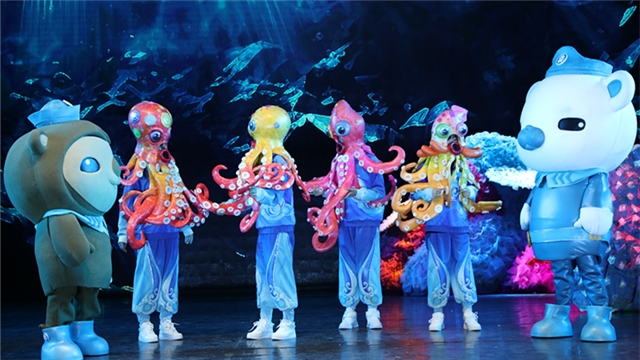 卡通造型新体验:剧中打造了富有新奇感、时尚感与动态感的卡通造型,每个角色都栩栩如生,情感丰富。增添了观众在整个演出中的视觉吸引力,让观众更容易投入到这个充满活力和想象的海底世界中,与可爱的卡通角色共同经历一场奇幻之旅。