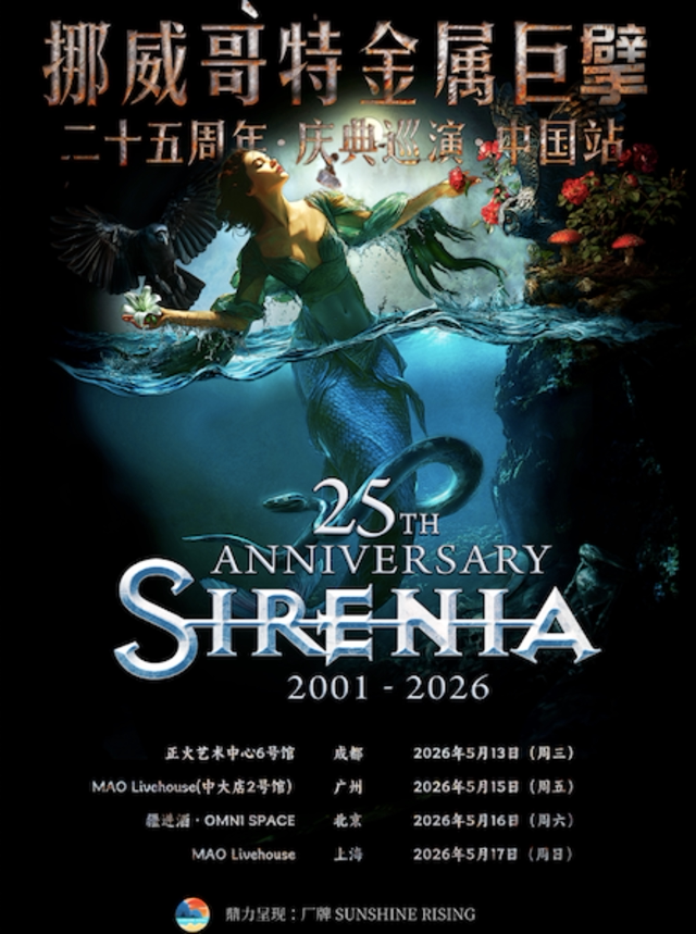 挪威哥特金属巨擘Sirenia 二十五周年庆典巡演 中国站
