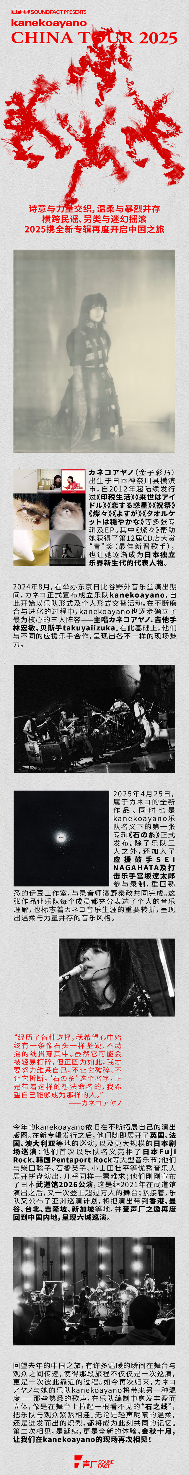 演出名称:【深圳】【声厂呈现】爱与生活的颂歌|kanekoayano乐队巡演·深圳站【网上订票】演出时间:2025.10.25 周六 20:00