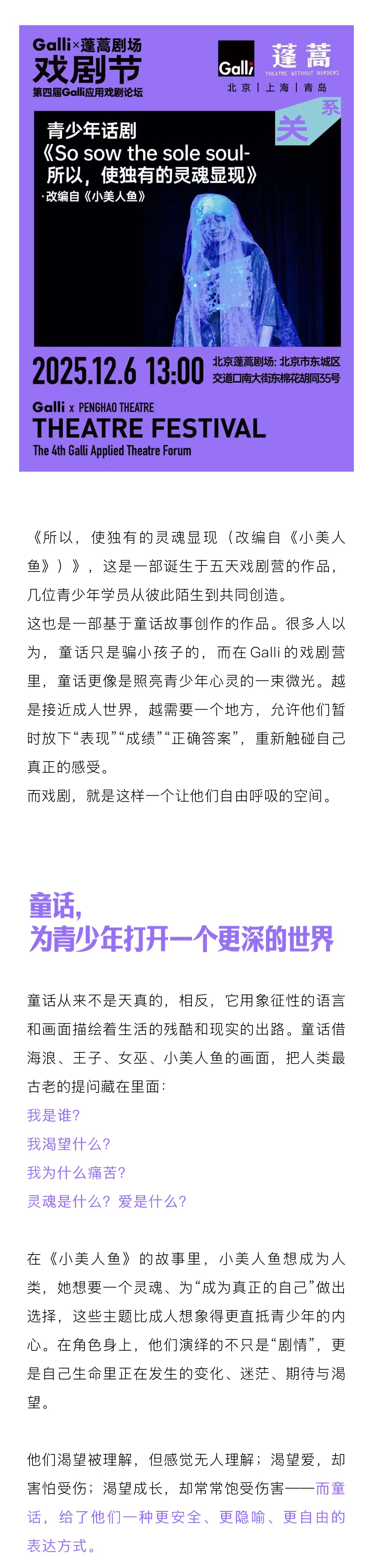 【北京】德国Galli青少年话剧《所以 使独有的灵魂显现》|童话世界|成长主题|心理疗愈