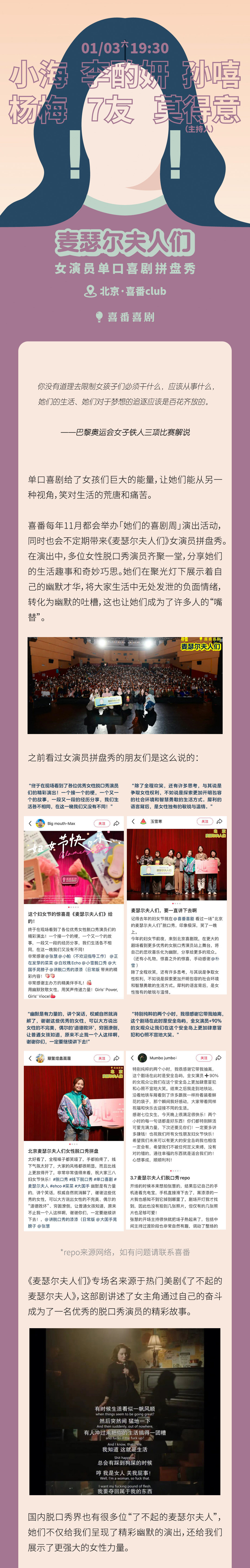 【北京】喜单脱友卡司|《麦瑟尔夫人们》女演员脱口秀拼盘秀|小海/李酌妍/孙嘻领衔|喜番喜剧