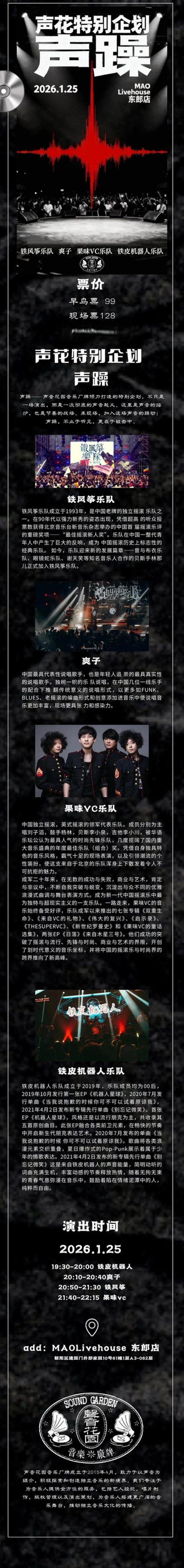 【北京】声音花园特别企划【声躁】|MAOLivehouse东郎店