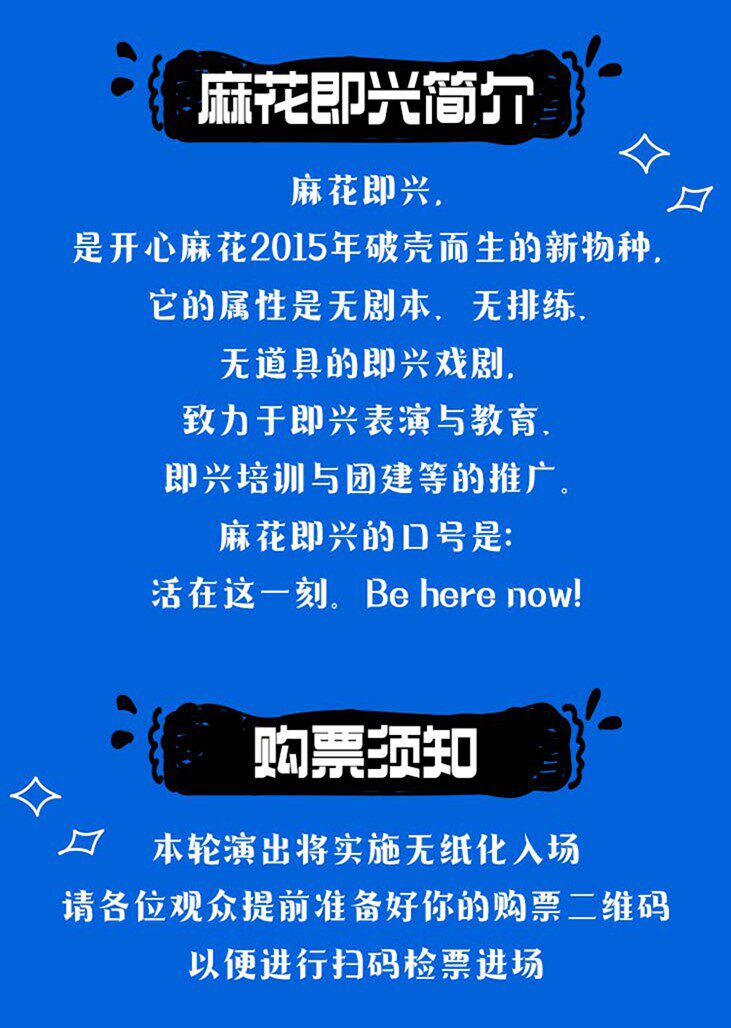 门票分为:快递纸质票、现场取票、电子票 (下单时请正常填写姓名、电话及收货地址,购买临近演出三天内场次,客服会在付款成功后联系您告知取票方式,当天演出请联系客服是否能即时出票,避免跑空;