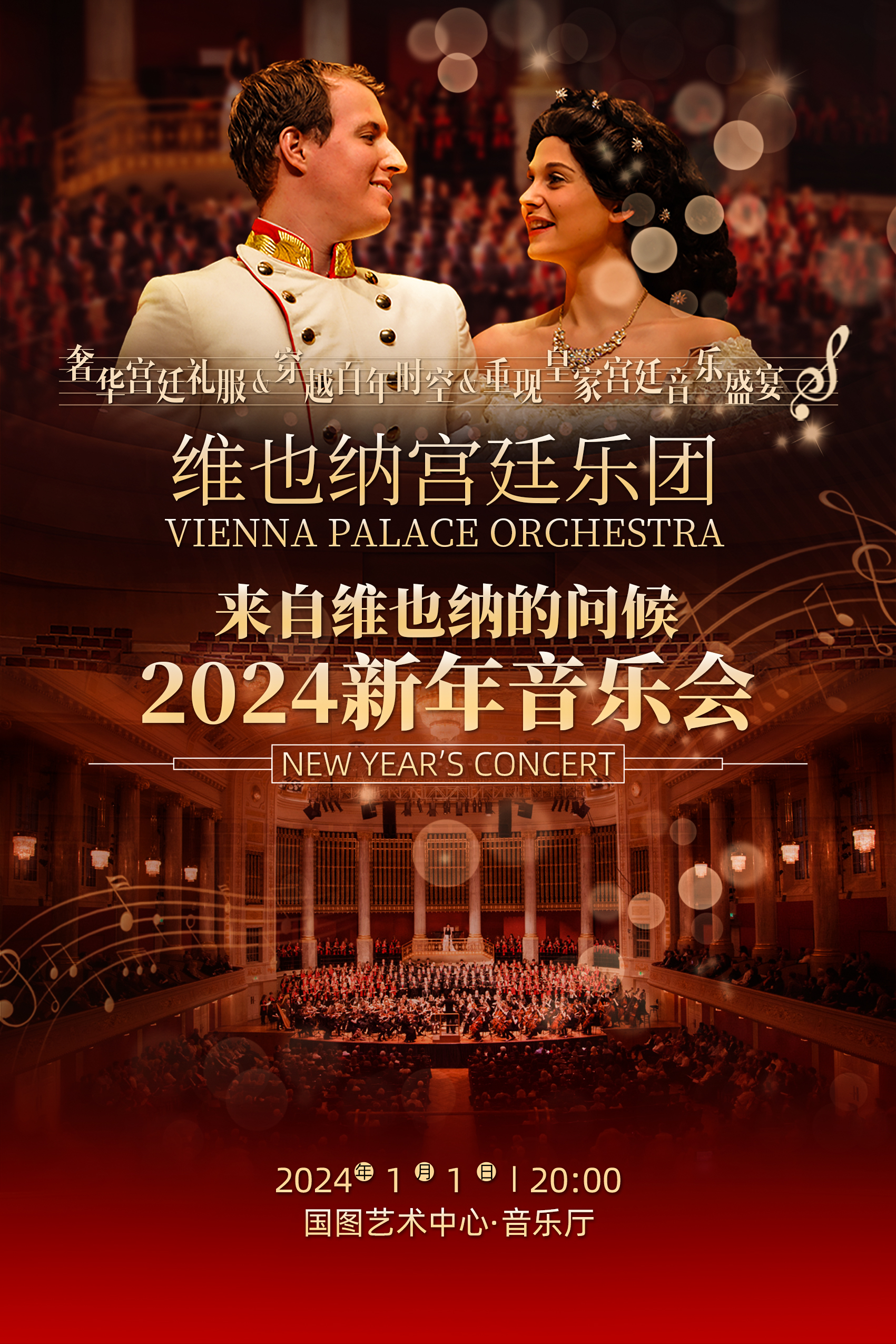 维也纳宫廷乐团用一种最原汁原味的音乐表演形式,诠释施特劳斯家族等作曲家的经典作品,重现古典音乐的典雅与庄重。2024年1月1日20:00,维也纳宫廷乐团将以优雅的音乐,把最诚挚的新年祝愿带给国内古典乐迷朋友们~