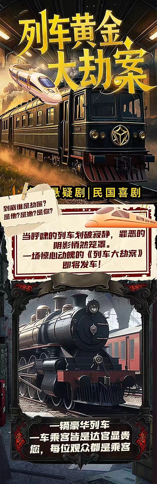 【北京】沉浸式互动戏剧【列车黄金大劫案】侦探悬疑剧民国喜剧|推理|惊悚|喜剧|沉浸|烧脑|全员入戏|全程高能