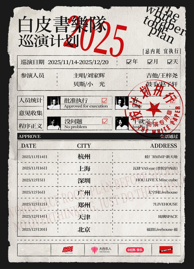 【北京】白皮书乐队「按计划执行」巡演 北京站