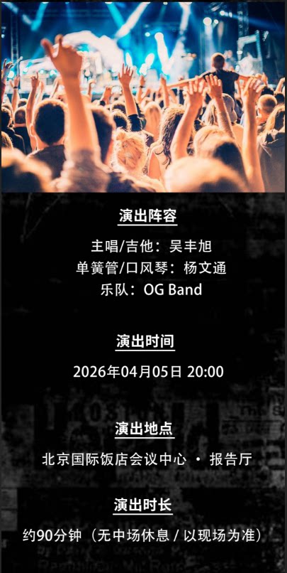 3.商品预售期间,票价调整及最终销售数量将由主办方和演出场馆确定,正式开票后将根据用户付款的先后顺序依次配票。我们会尽量满足用户需求,如最终未能配票,购票通承诺全额退款,敬请谅解。