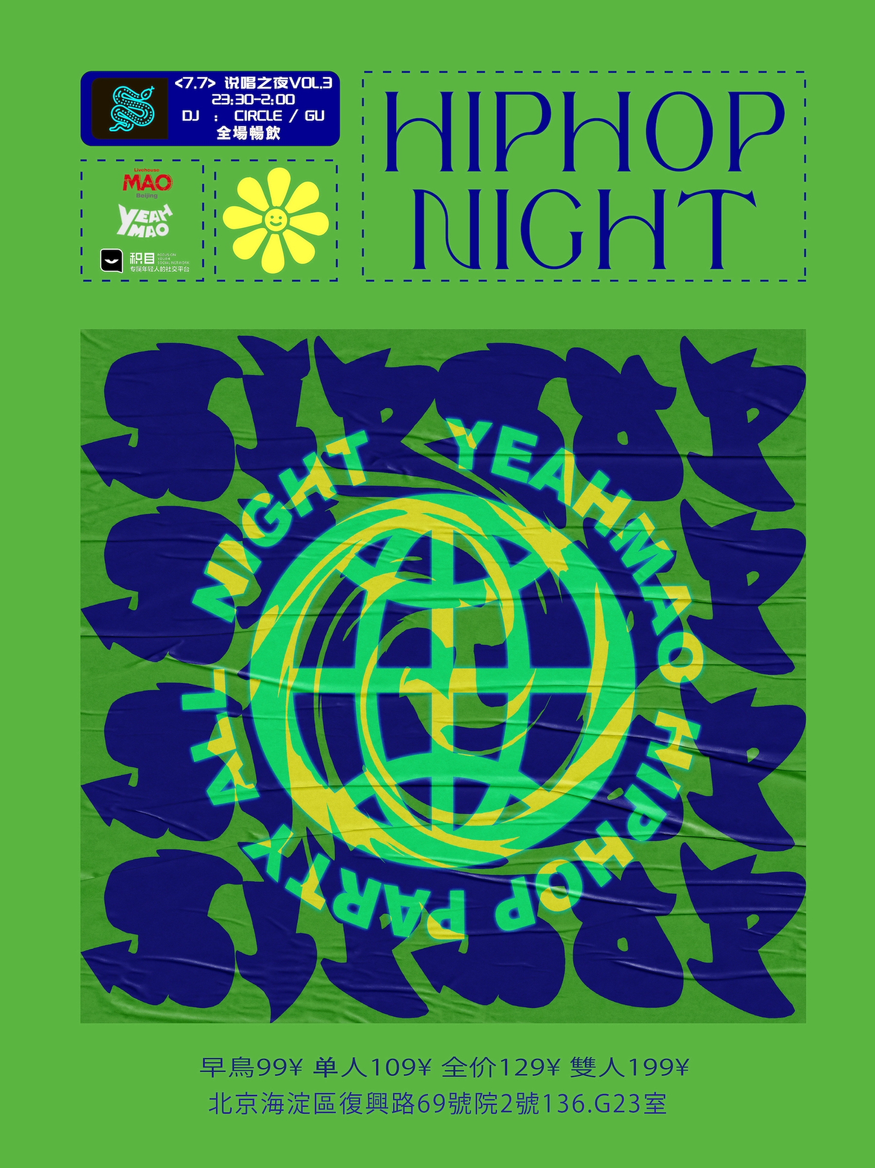 7.7 | 夜猫俱乐部「嘻哈之夜 黄金年代」Hiphop Night 全场畅饮!