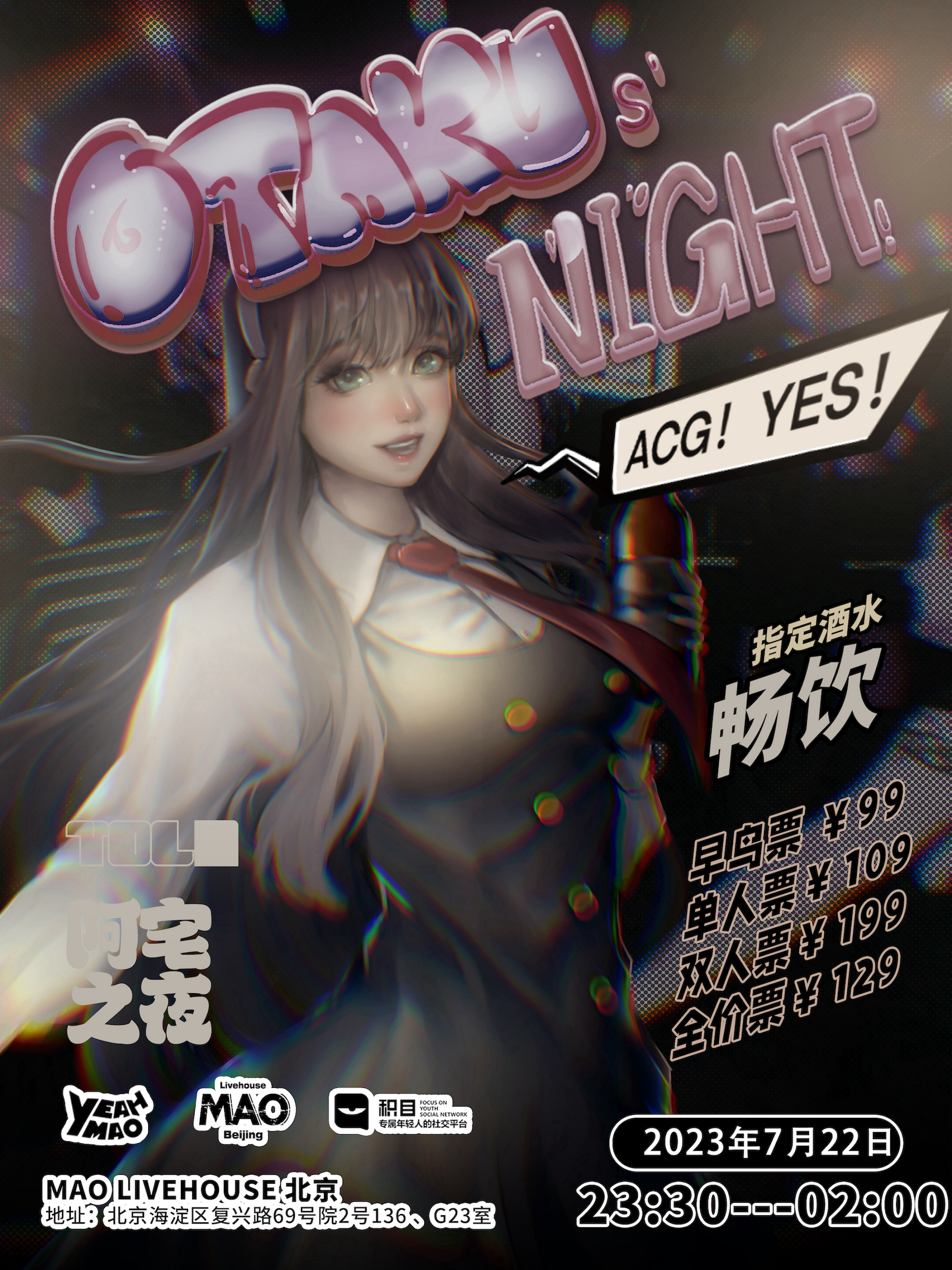 【北京】7.22 | 阿宅之夜「OTAKUs' NIGHT」ACG主题音乐派对 全场畅饮!