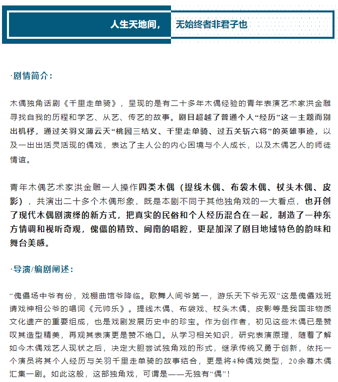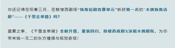 【北京】鼓楼西戏剧X深圳木偶剧院 木偶独角戏《千里走单骑》