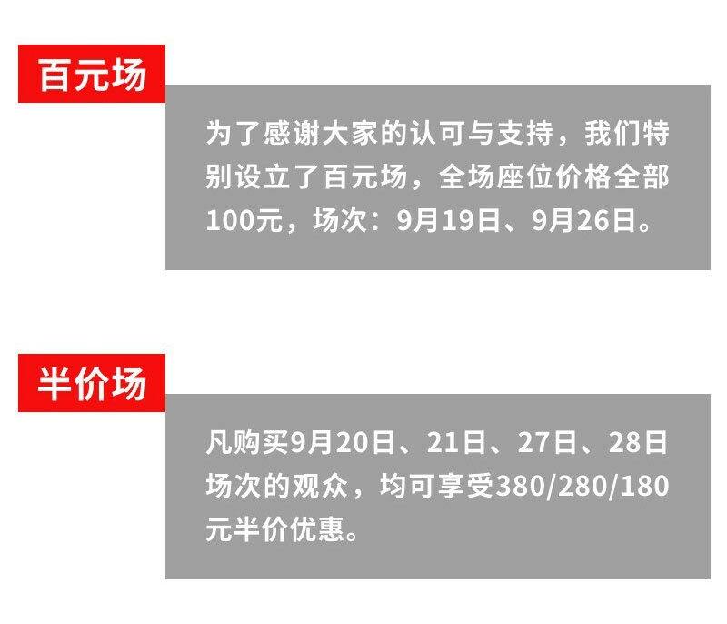 购买演出票之前请一定仔细核对日期和场次票价。购买同场同价位,单笔订单购买,默认连坐出票,如位置不能满足连坐需求,客服会与您电话沟通;