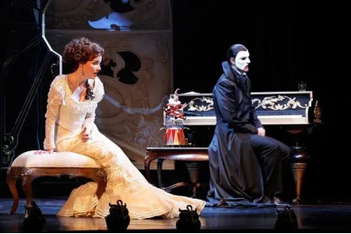 音乐剧“四大名剧”之首,改编自法国作家加斯顿勒鲁同名小说,韦伯作曲。1988年1月26日《歌院魅影》在百老汇剧院首演。其最大特色是以绚丽耀眼的布景装置、近乎无对白而以歌曲贯穿全场的创作风格、动辄三四十人的合唱队和乐团,制作出听觉和视觉效果无比强烈的歌剧音乐剧氛围。
