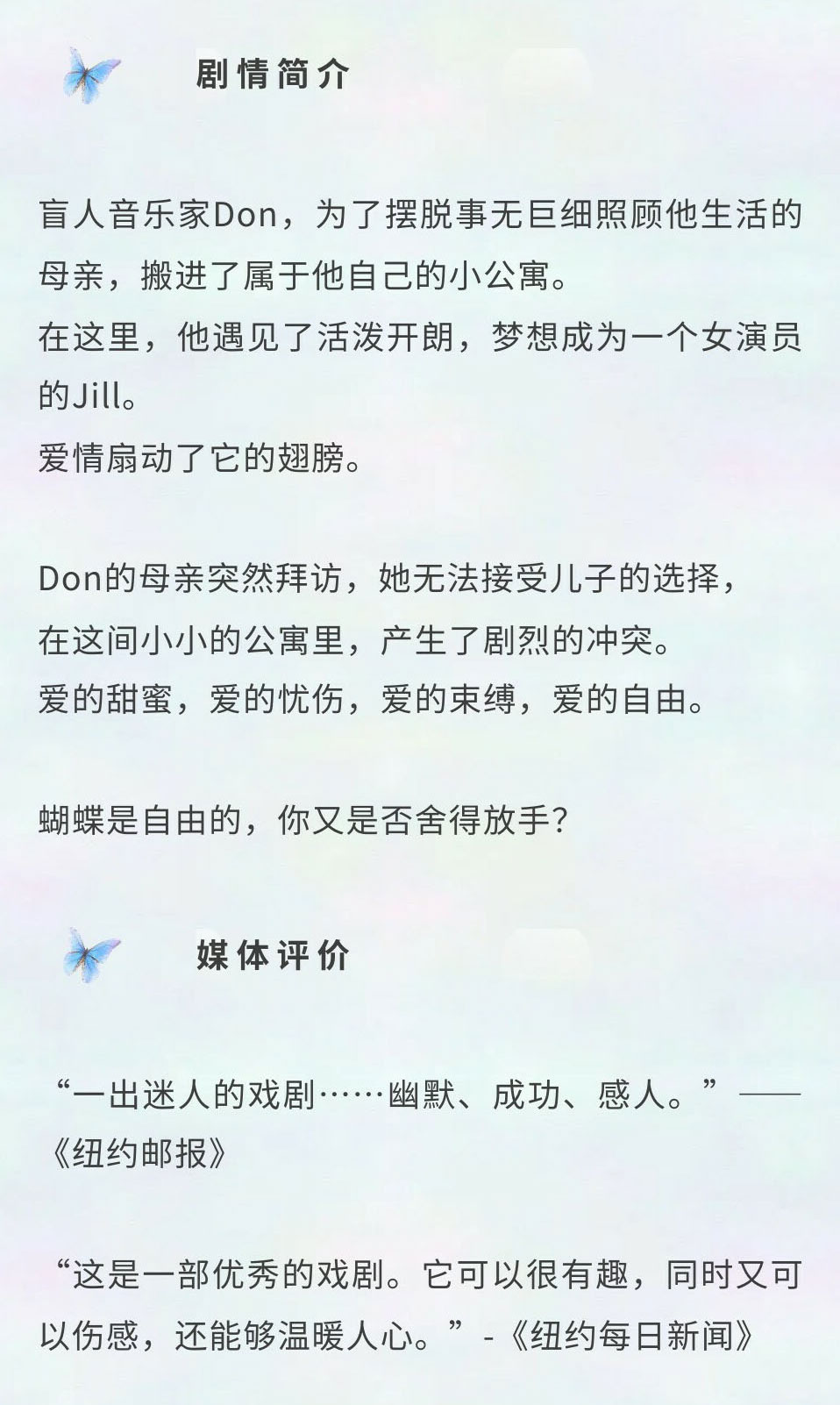 【北京】话剧《蝴蝶是自由的》BUTTERFLIES ARE FREE