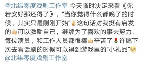 注意注意注意:我们剧院没有空调,没有暖气,没有电话……音响是坏的,灯光是旧的,椅子是破的,窗户是漏风的,舞美是没的……因为,每当装修工人来问我们安装得如何,我们都会统一回复--你若安好,那还得了!