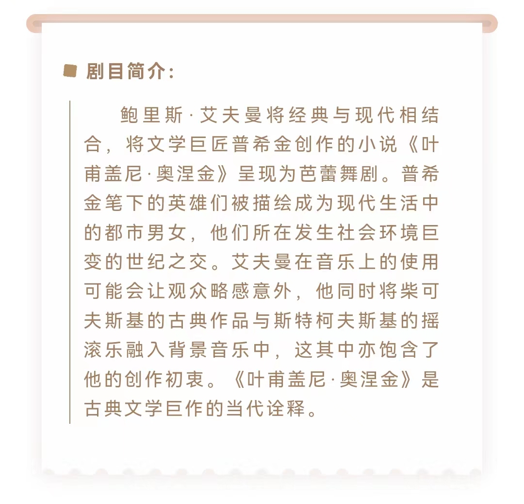 【北京】第六届中国国际芭蕾演出季 俄罗斯圣彼得堡艾夫曼芭蕾舞团《叶甫盖尼·奥涅金》