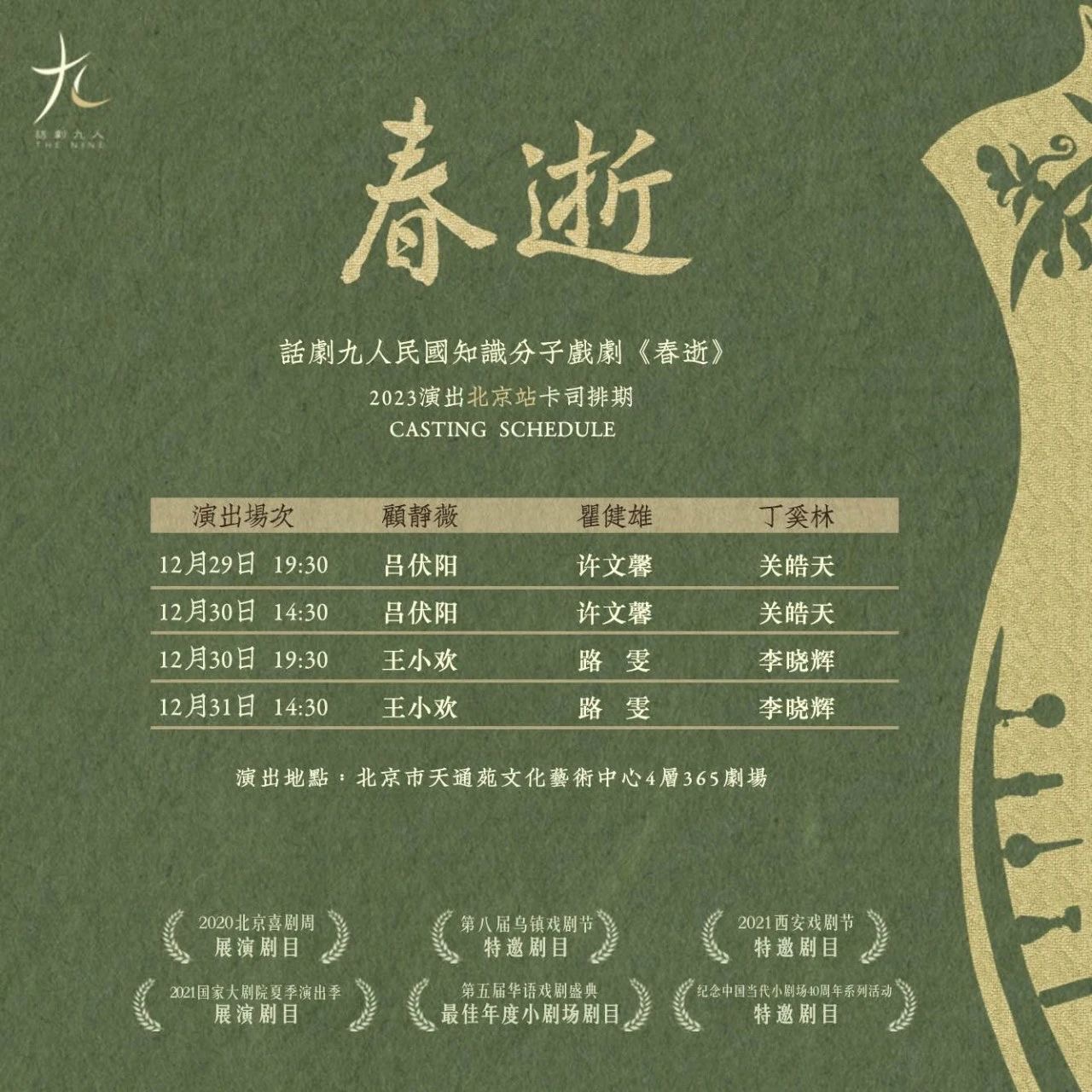 话剧《春逝》是由话剧九人出品的一则形式轻巧却意蕴绵长的话剧,也是九人民国知识分子话剧系列的第二部作品。