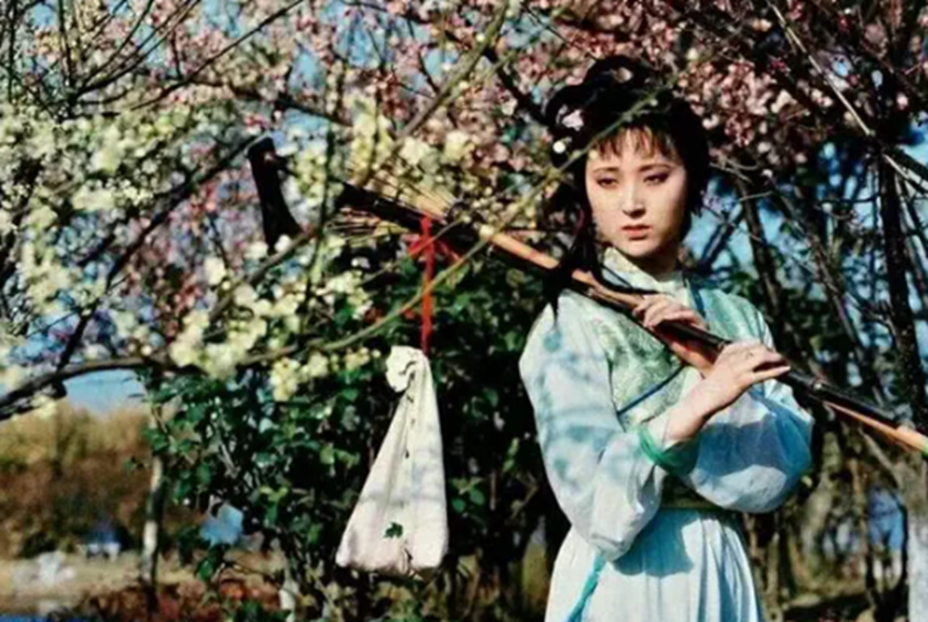 《葬花吟》出自原著二十七回,一向被定位为林黛玉心灵的写照,是塑造林黛玉性格特征的重要诗作,也是《红楼梦》全书中最为经典的诗作之一。歌曲曲调采用羽调式,与一般人所理解的《葬花吟》不同,王立平先生并没有将“一朝春尽红颜老,花落人亡两不知”作为主要描述对象,而是采用了“天尽头,何处有香丘”一句作为主题,着重表达林黛玉对前途的绝望以及对自身身世的悲凉感怀,也表现出了她看透世事的脱俗姿态。