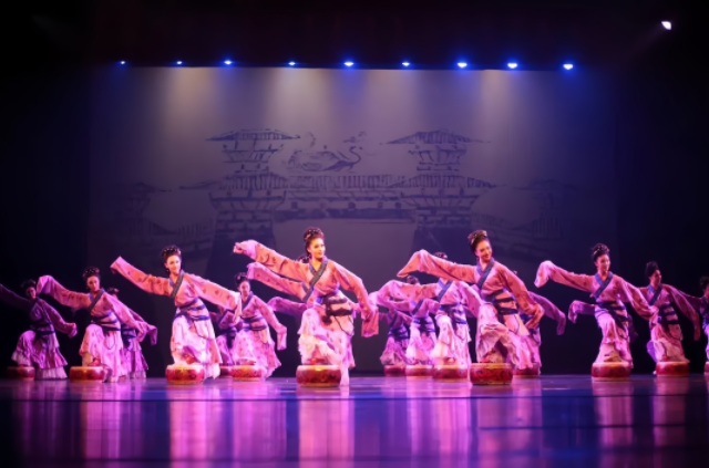 作品简介:选自中国大型古典舞剧《铜雀伎》片段,是中国古代音乐、诗歌、舞蹈相结合的完美体现。表现中国汉代独有的乐舞表现形式——踏盘踏鼓边歌边舞,彰显中国深厚的文化底蕴和汉代博大、宏放、古拙的审美韵味。