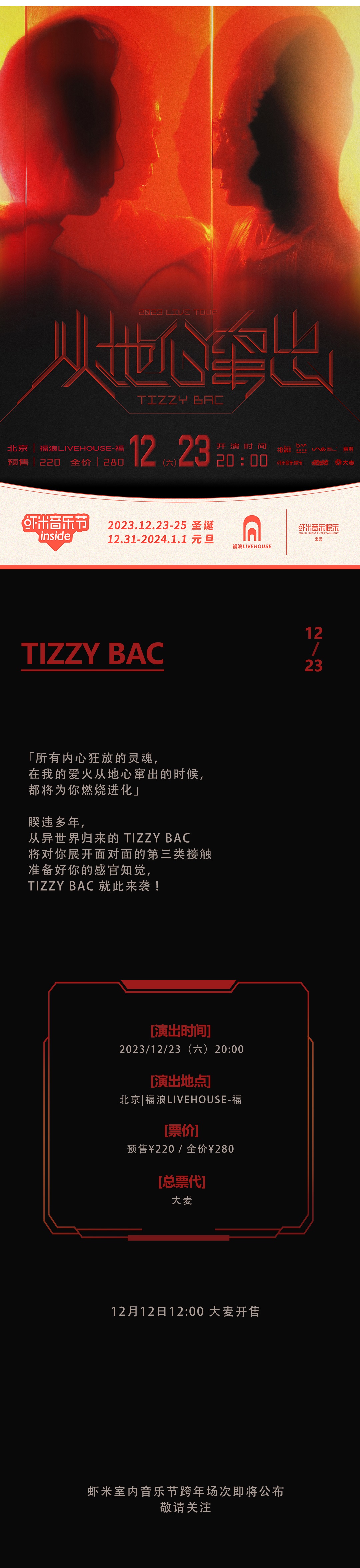 【北京】Tizzy Bac「从地心窜出」北京特别专场 【虾米室内音乐节】
