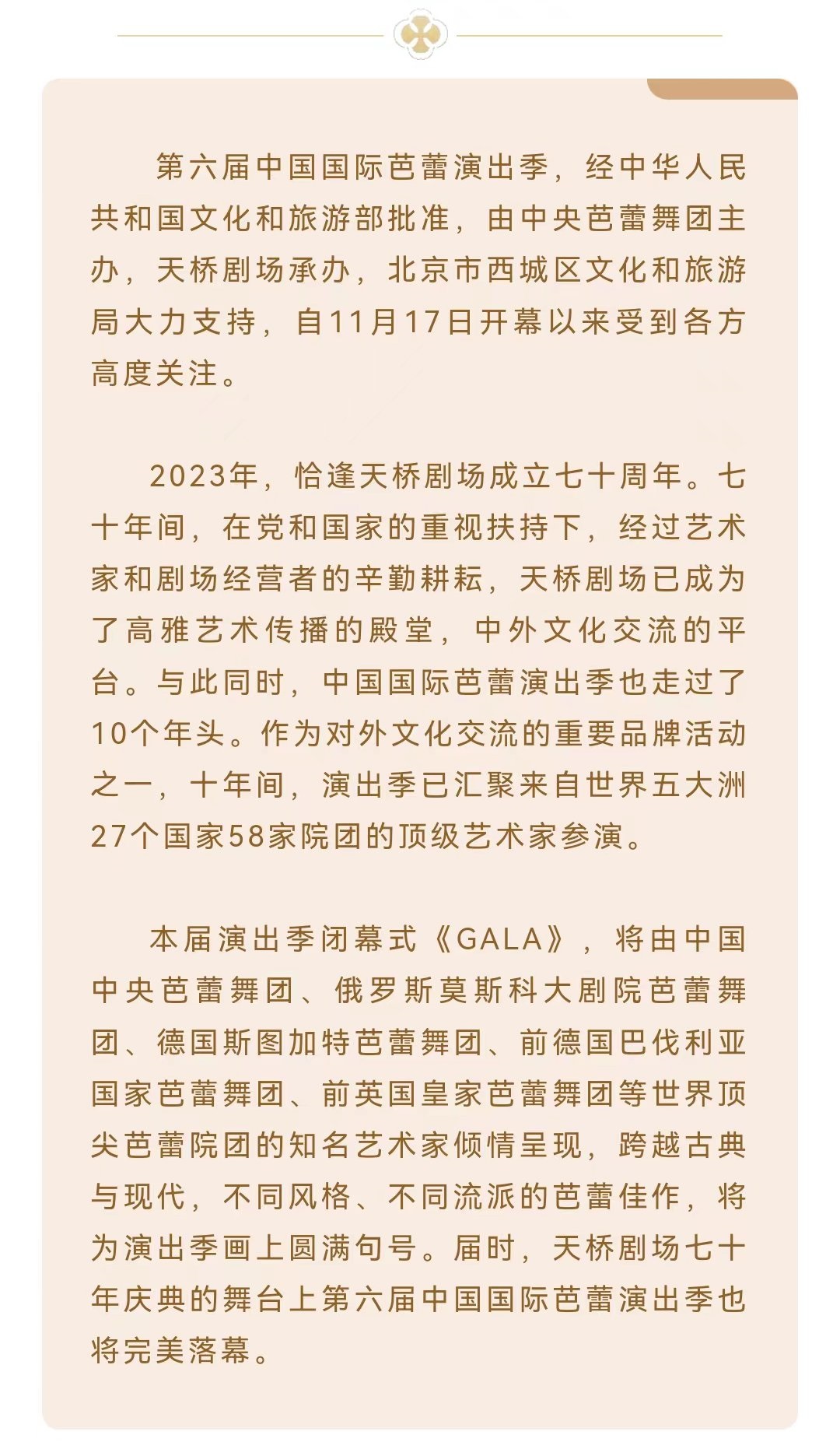 【北京】第七届中国国际芭蕾演出季 闭幕式《GALA》2026.01.09-2026.01.11天桥剧场