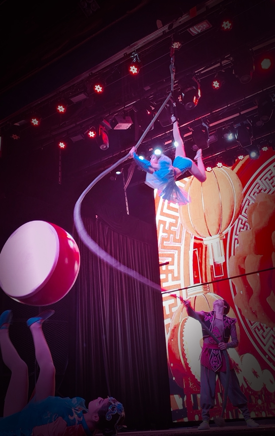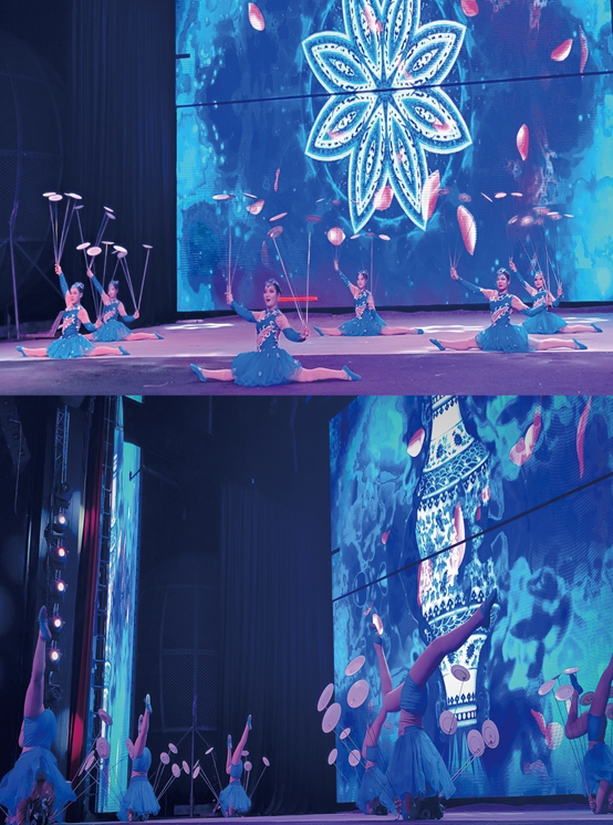 杂技串烧,由18个人完成,8种不同的杂技穿插在一起,充分展现演员扎实的基本功和高超的技术。