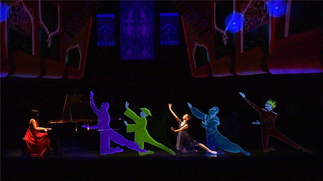 ??亚历山德拉·德雷斯库为这个深受喜爱的故事,创造了自己的个人版本。她将自己想象为克拉拉——一个梦想变成钢琴家的小女孩。通过讲述自己作为“克拉拉”的故事来激励观众:从小女孩成长为音乐会钢琴家之路。在舞台上,亚历山德拉坐在钢琴前,芭蕾舞者在透明纱幕后面翩翩起舞。由35000张精致手绘所制成的数码动画被投影在纱幕上,将这个奇妙的童话故事呈现得栩栩如生。这些动画随着音乐和舞者互动就好似跳出屏幕之外,和钢琴家及芭蕾舞者的世界融为一体。观众仿佛自己也是置身于《胡桃夹子》的童话世界中。动画影像结合舞者表演,让人看到真实的“玛丽”和虚拟的王子一同翩翩起舞,亚历山德拉还与在她琴键上飞舞跳跃的小精灵进行了有趣的互动,人与虚拟现实的交互式表演,百变莫测、相映成趣。《糖果仙子之舞》《阿拉伯舞》《中国舞》《双人舞》和《花的圆舞曲》等名曲亦贯穿其中,音乐包含了由米哈伊尔·普列特涅夫、斯捷潘·埃西波夫、珀西·格兰杰等人改编柴科夫斯基原曲的15首脍炙人口的乐章,以及加文·萨瑟兰的三首全新改编作品。