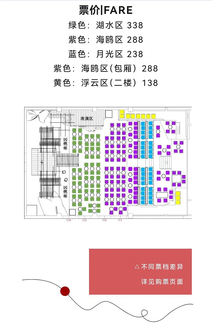 *本剧为现场选座,同一票档内先到先得。(单人购买双人桌席区,可能出现拼桌情况)