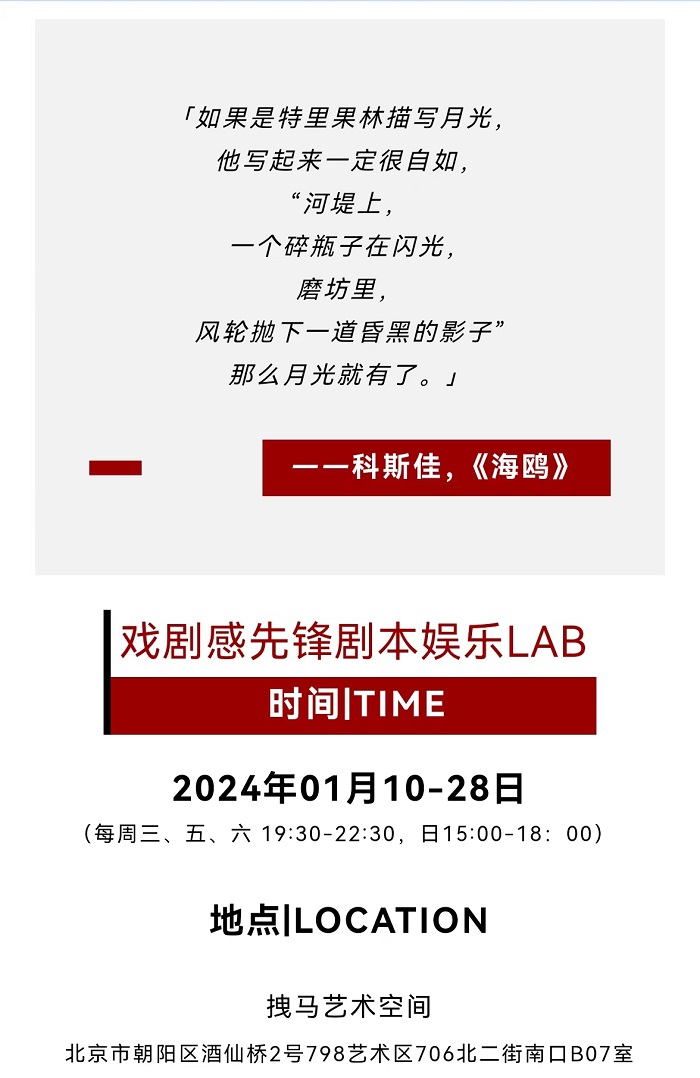 【北京】【拽马戏剧】戏剧感先锋剧本娱乐LAB《海鸥》