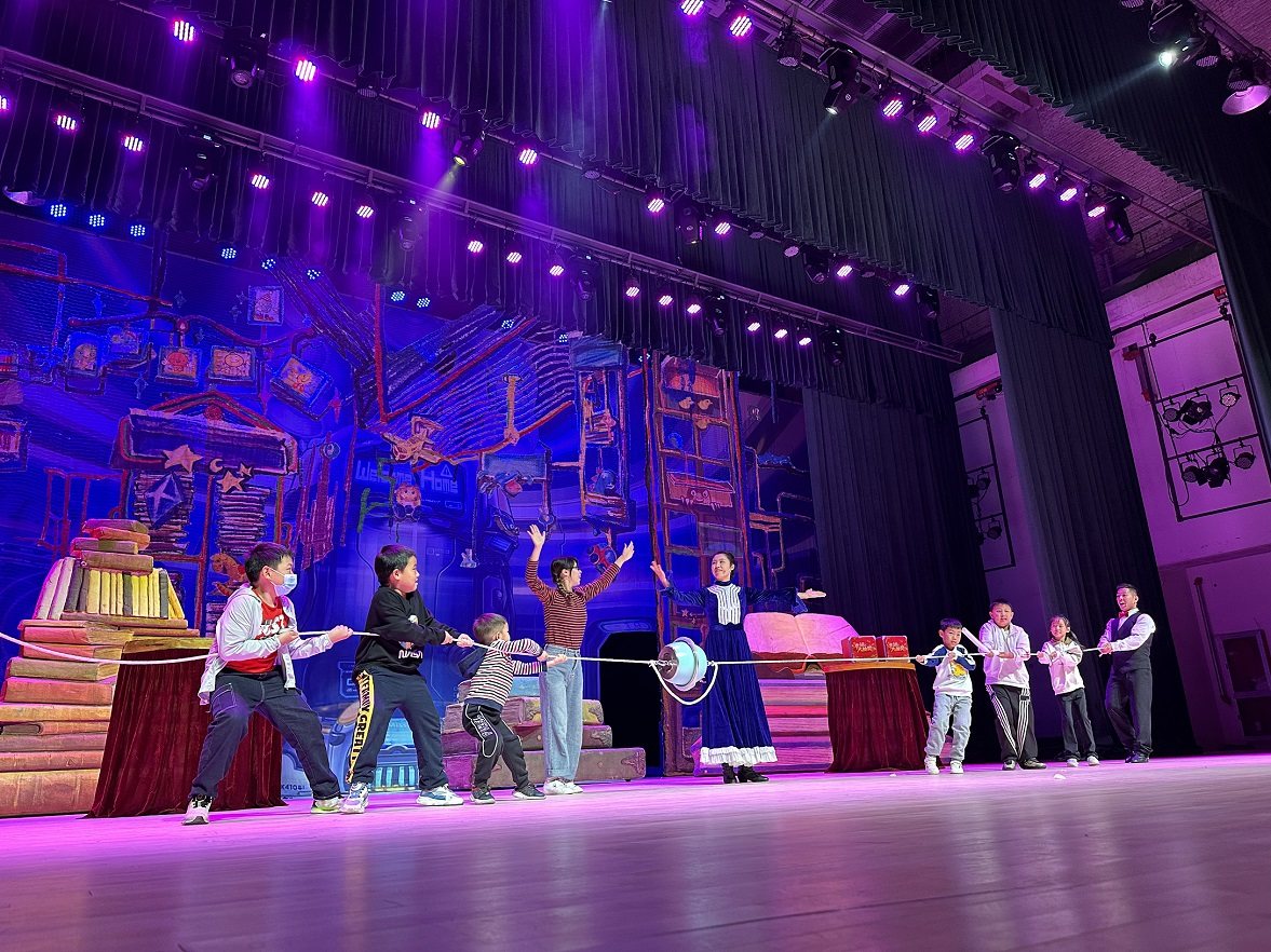 没被抽到的小朋友演出结束也可以上台体验科学道具及合影