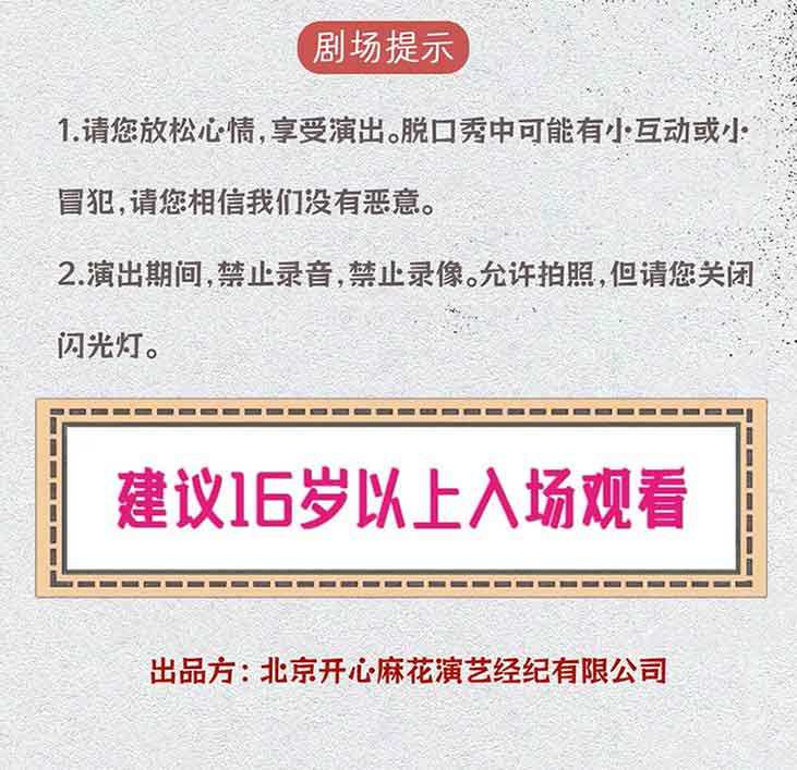 1.购买前请您提前规划好行程,做好相应准备,以免影响您的正常观演,感谢您的理解和配合。