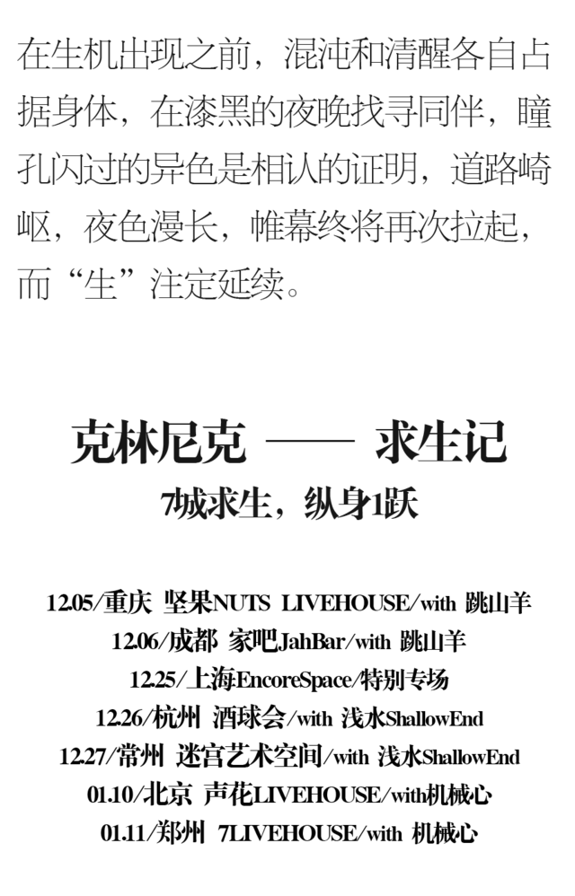 【北京】“求生记”TheClinic克林尼克× 机械心双专场 北京站
