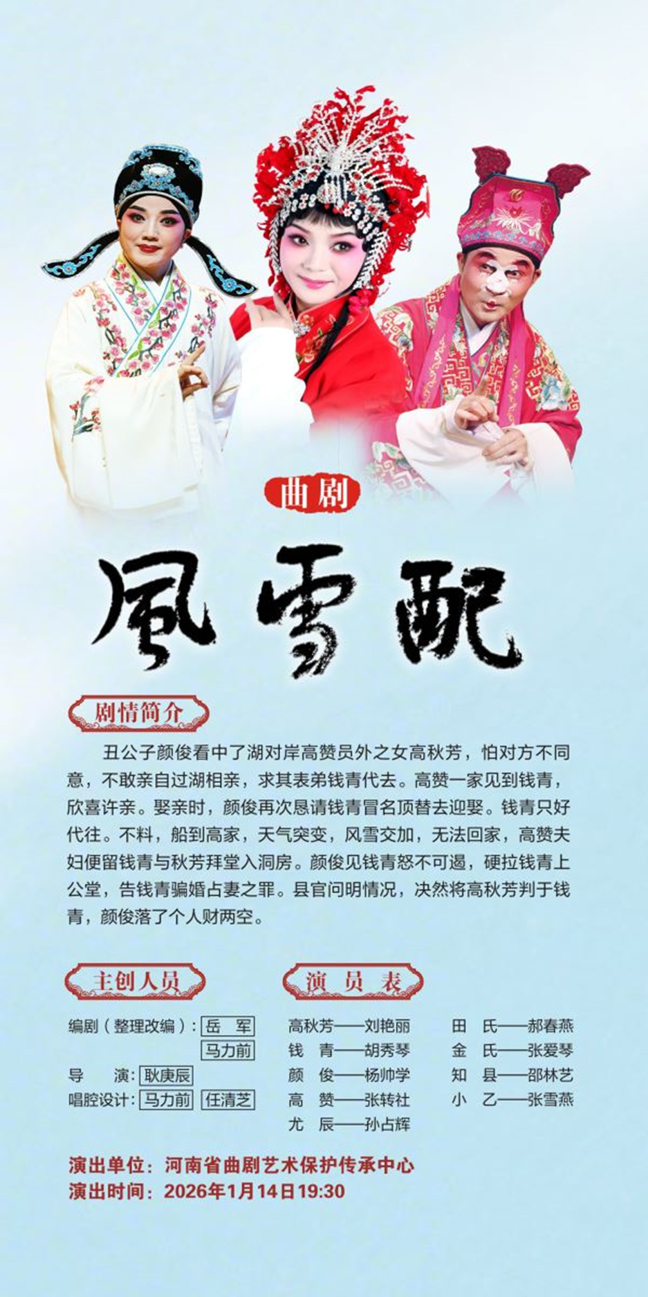 【北京】2026年新春河南省三大剧种优秀剧目北京展演周曲剧《风雪配》