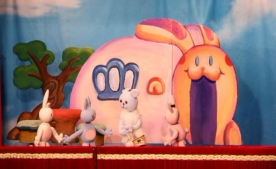 《小羊过桥》:两只小羊过桥时各不相让,结果纷纷落入水中险些被大灰狼吃掉。机智的小狗把大灰狼引上独木桥,又撤掉了独木桥使大灰狼跌入河中被独木桥砸死了。小羊得救了,他们明白了互相谦让的道理。