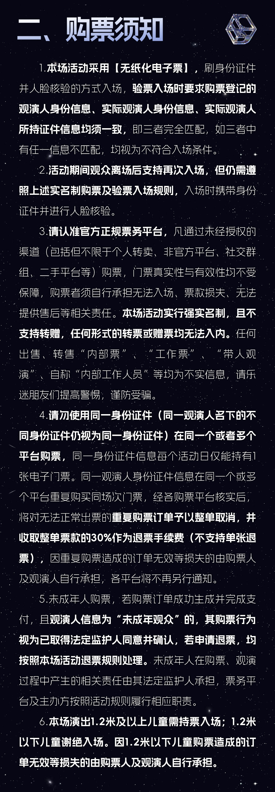 亲子类演出,儿童一律凭票入场;非儿童亲子类演出,1.2米以上儿童凭票入场,1.2米以下儿童谢绝入场;