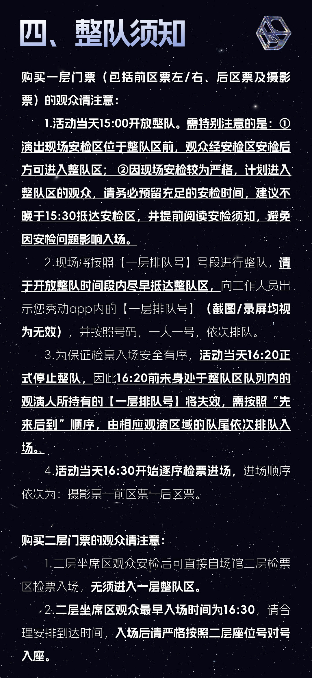门票分为:快递纸质票、现场取票、电子票 (下单时请正常填写姓名、电话及收货地址,购买临近演出三天内场次,客服会在付款成功后联系您告知取票方式,当天演出请联系客服是否能即时出票,避免跑空;