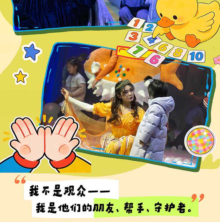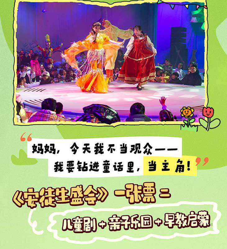 1.本演出坐席间通道也为舞台表演区域,演员们将行走在您的身边,请注意小朋友游玩安全。