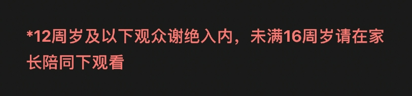 12周岁及以下观众谢绝入内,未满16周岁请在家长陪同下观看。