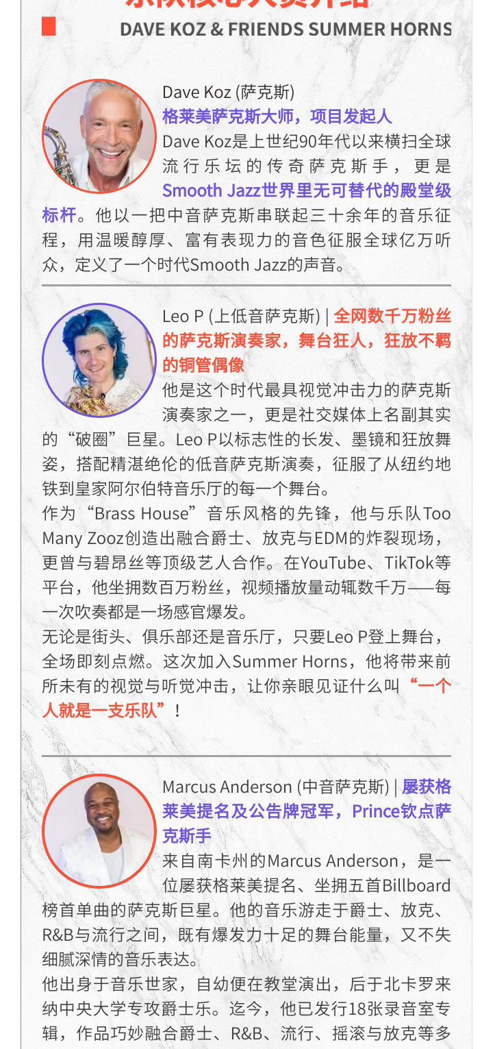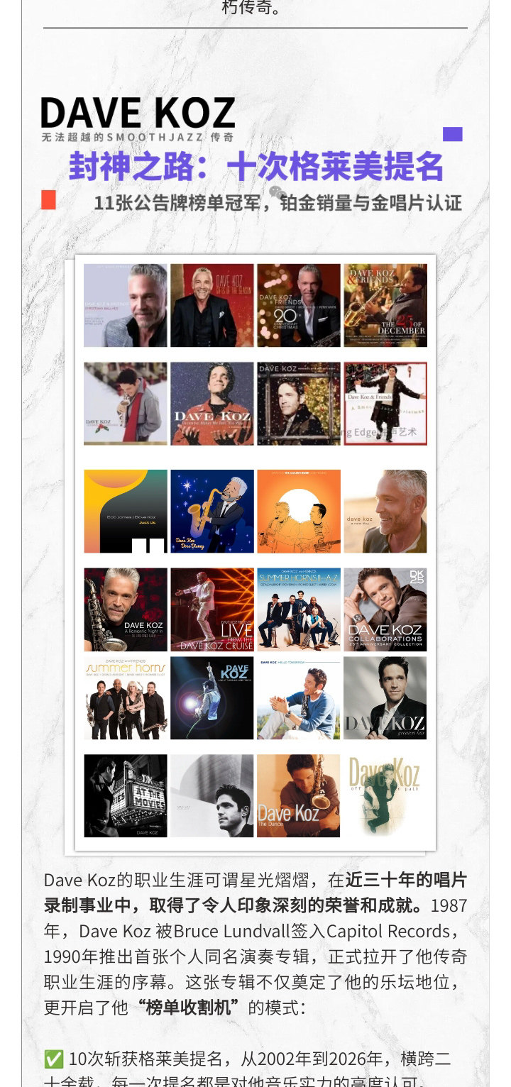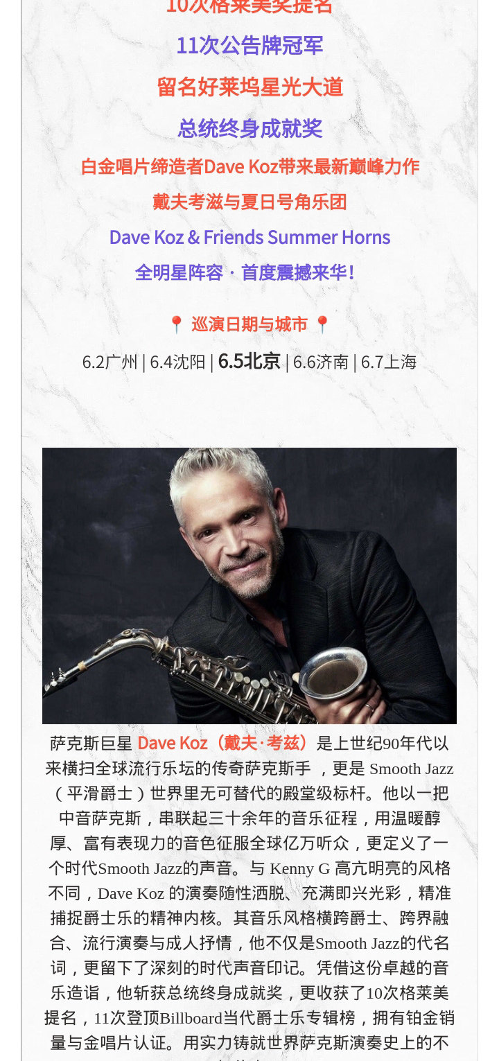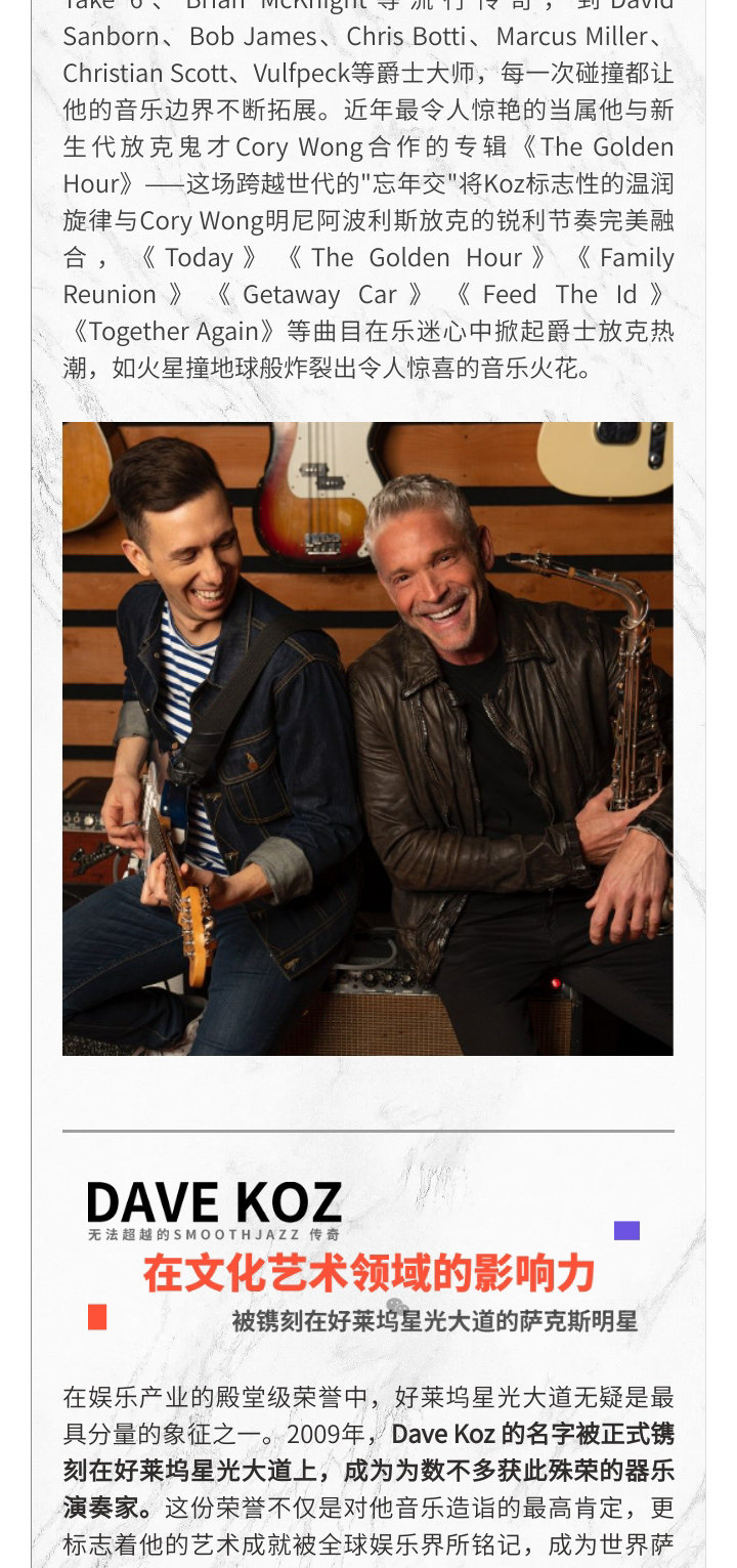 购买1080 880档门票 现场购买Dave Koz 中国巡演限量周边 享7.5折优惠