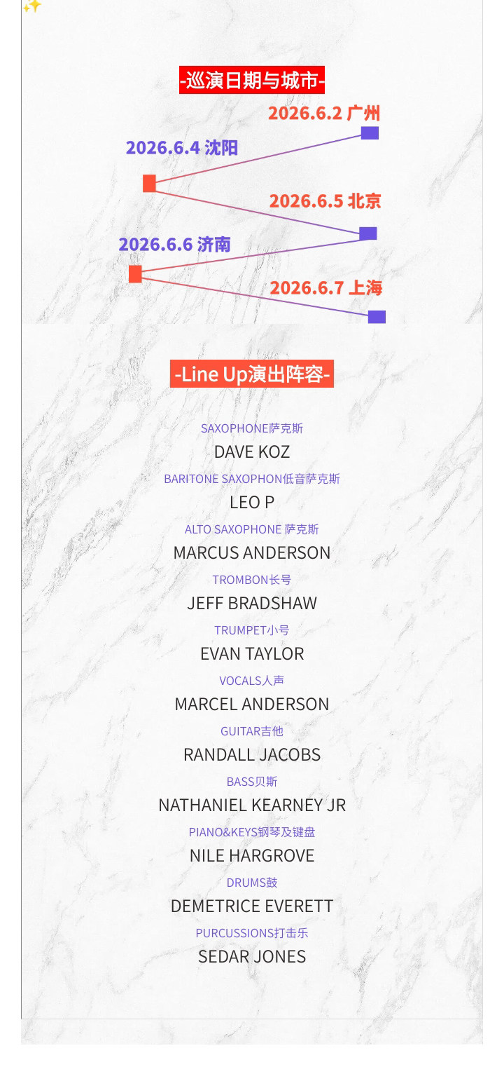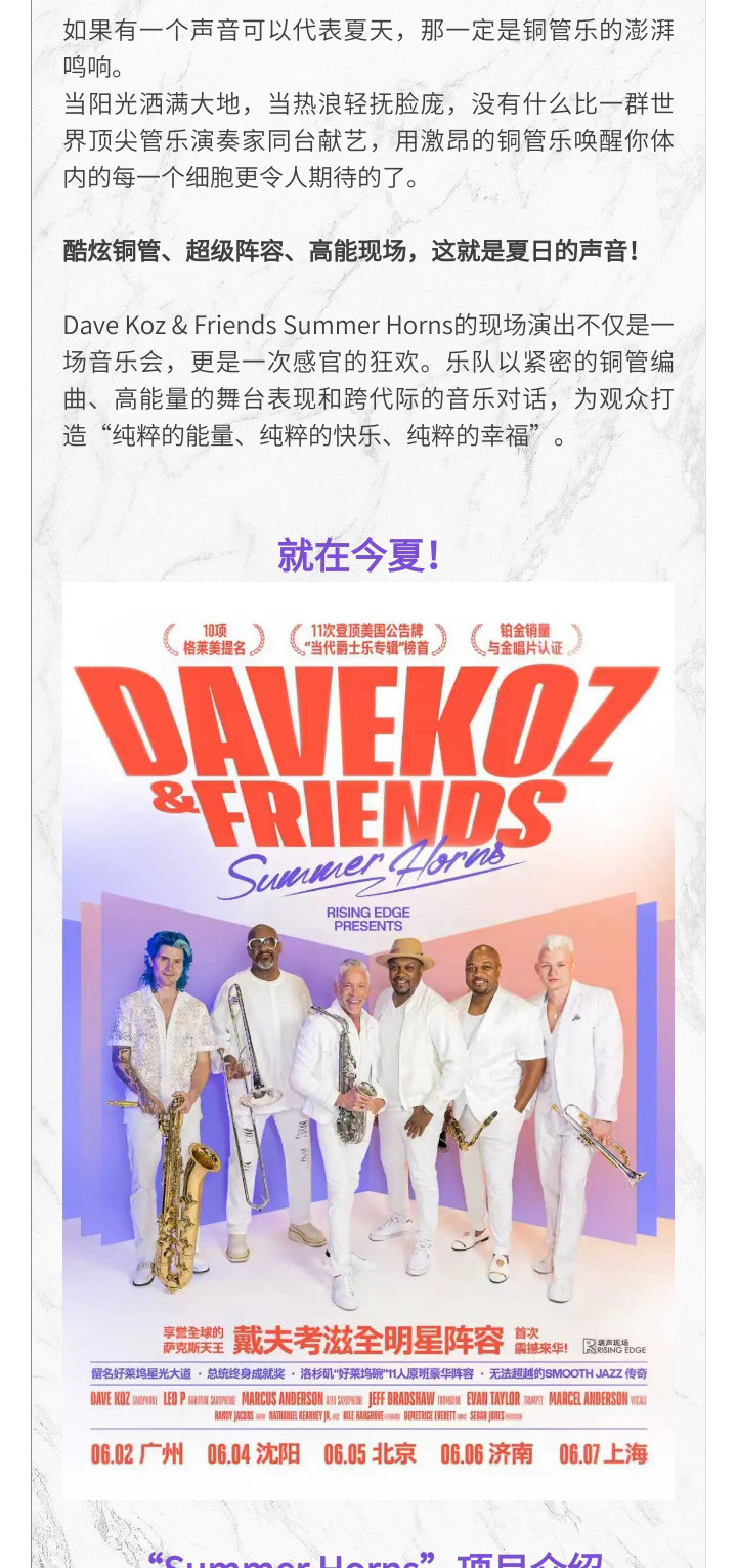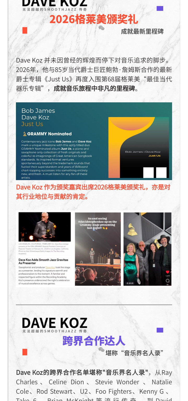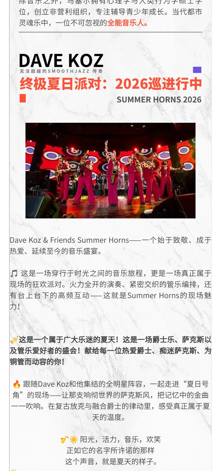购买1080 880档门票 现场购买Dave Koz 中国巡演限量周边 享7.5折优惠