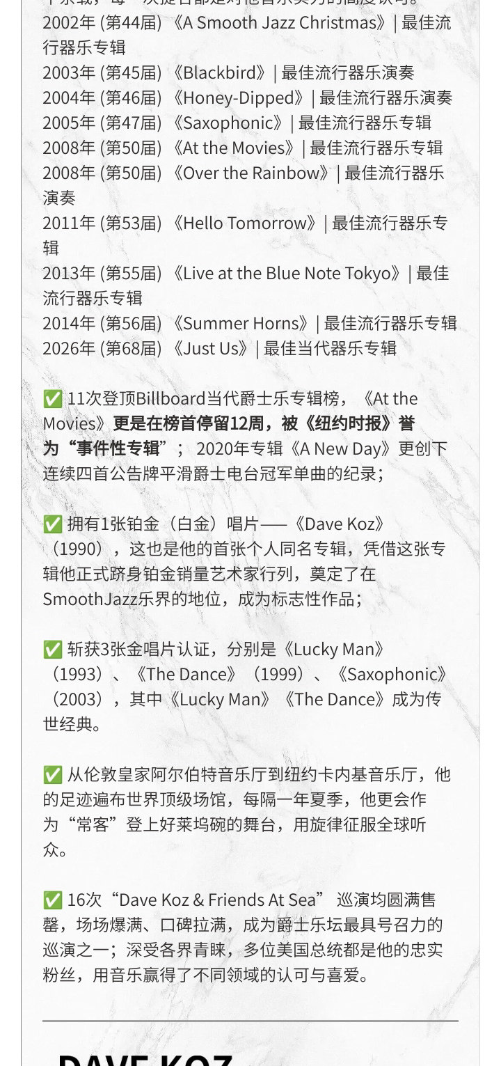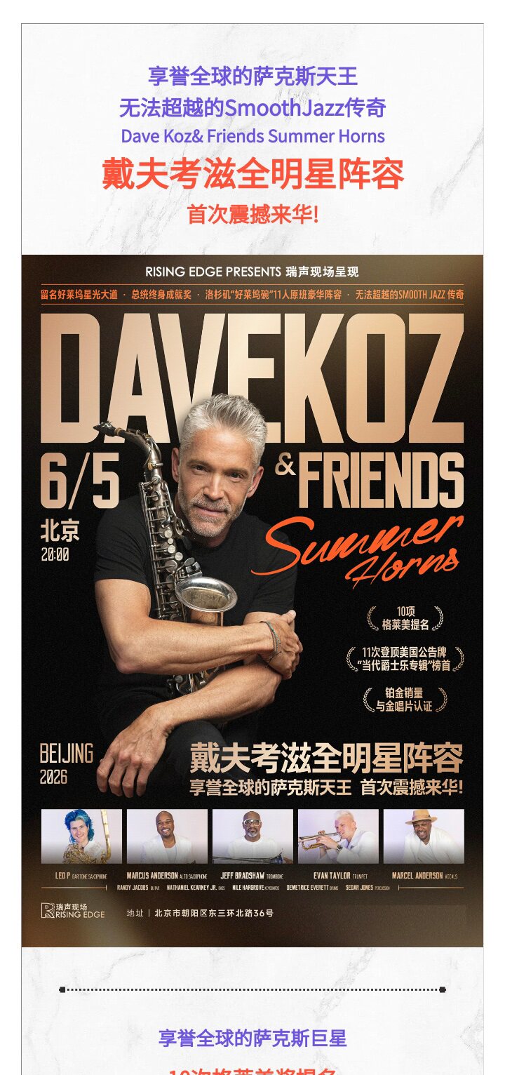 购买1080 门票 含Dave Koz 中国巡演 限定签名海报一张